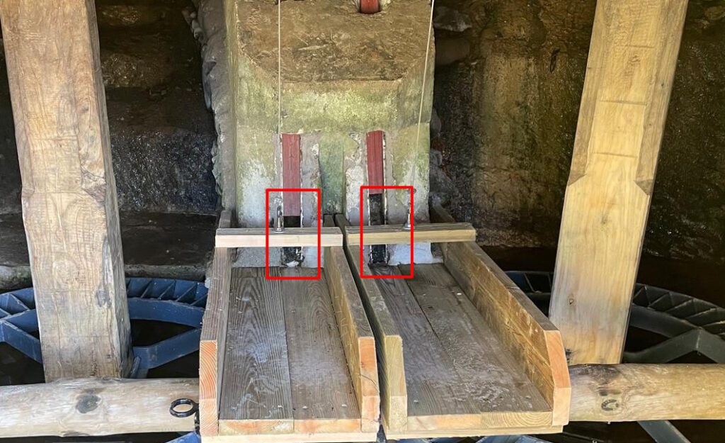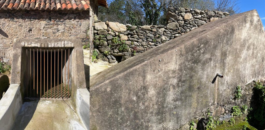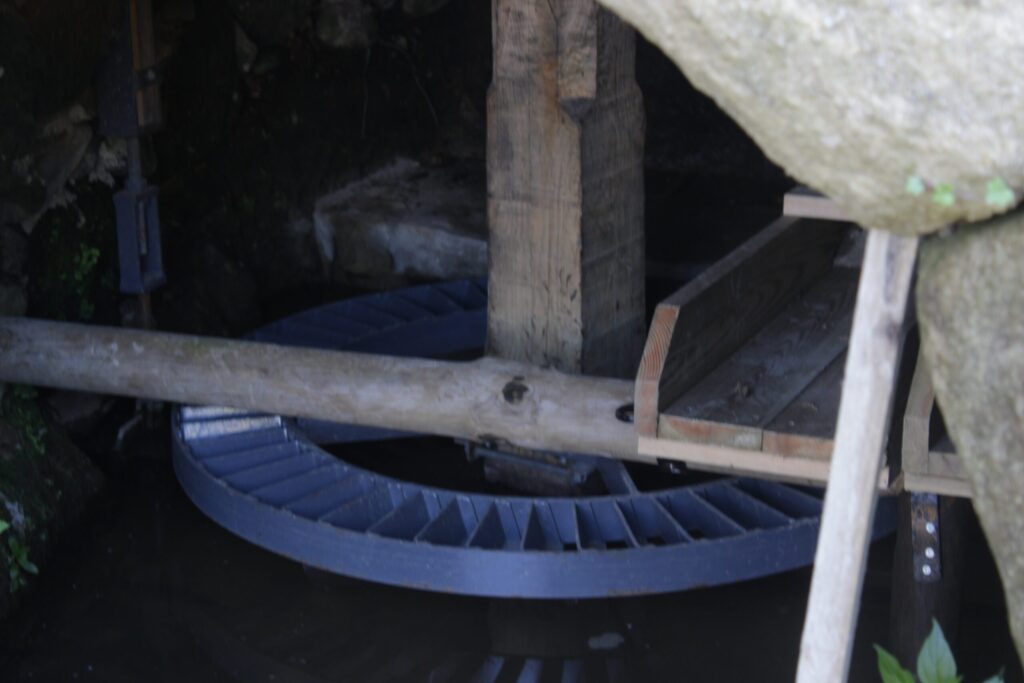 A água desloca-se pela levada, passa pelo cubo para ganhar pressão, sai na seteira em direção ao rodízio induzindo o movimento giratório. Este movimento vai fazer com que a mó andadeira que está dentro do moinho rode.